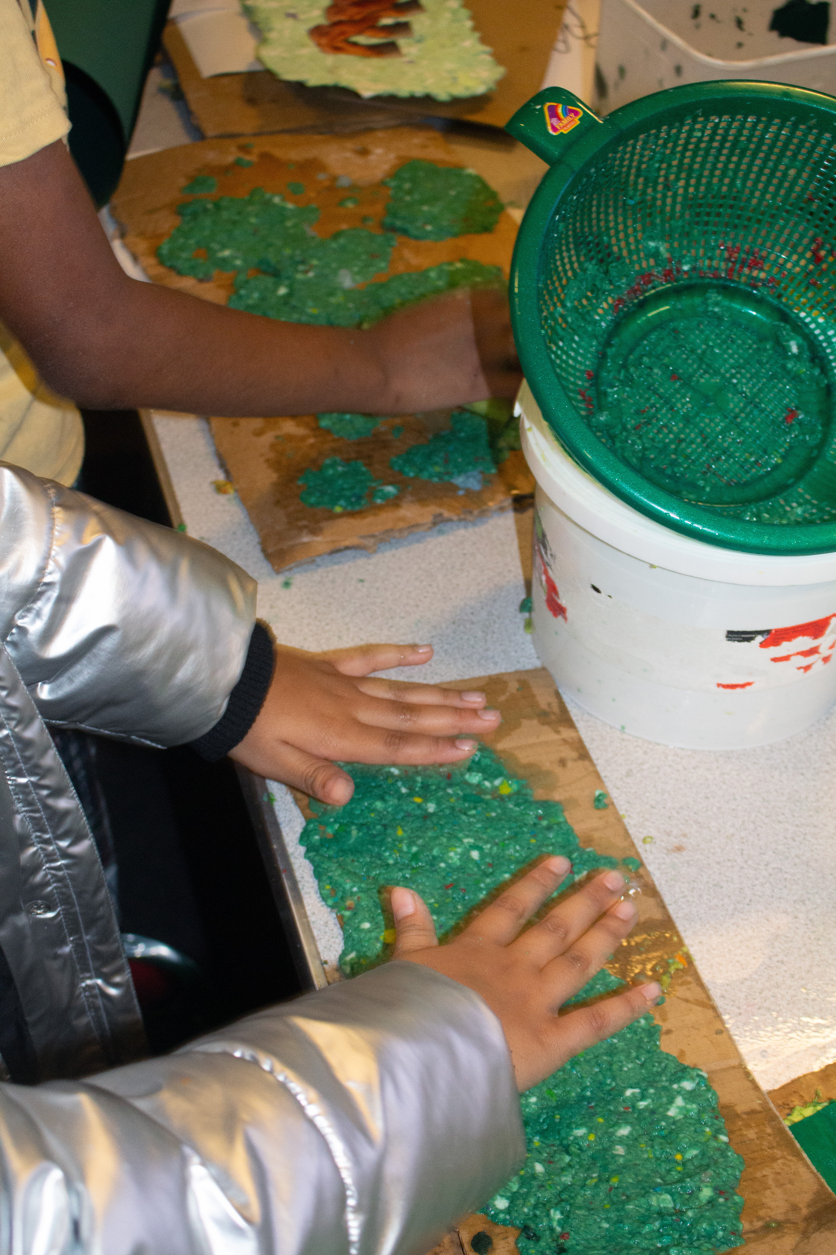As part of Festival of Stories in Newham, I designed and delivered a drop in, free workshop at Green Street Library invited families and D/disabled local people to make paper that fused together BSL sign into material meaning and making. Considering the related visual vocabularies (see middle image above for the BSL for paper), we shared, learnt and explored visual gesture as a vehicle for communication, sensory making and play.