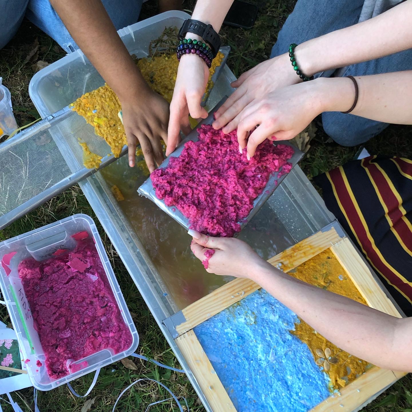 Creating pulped surfaces with the Art Press Collective (a group of 15 - 25 year olds local to Turf Projects in Croydon) we combinded foraged plants and weeds to colour, collage and etymologically reroot our findings into paper pulp. Playing with the nicknames and stories connected to local fauna, we utilised natural dyeing properties and created pieces of paper rejecting traditional A4 white sheets of paper these species would be archived historically within.