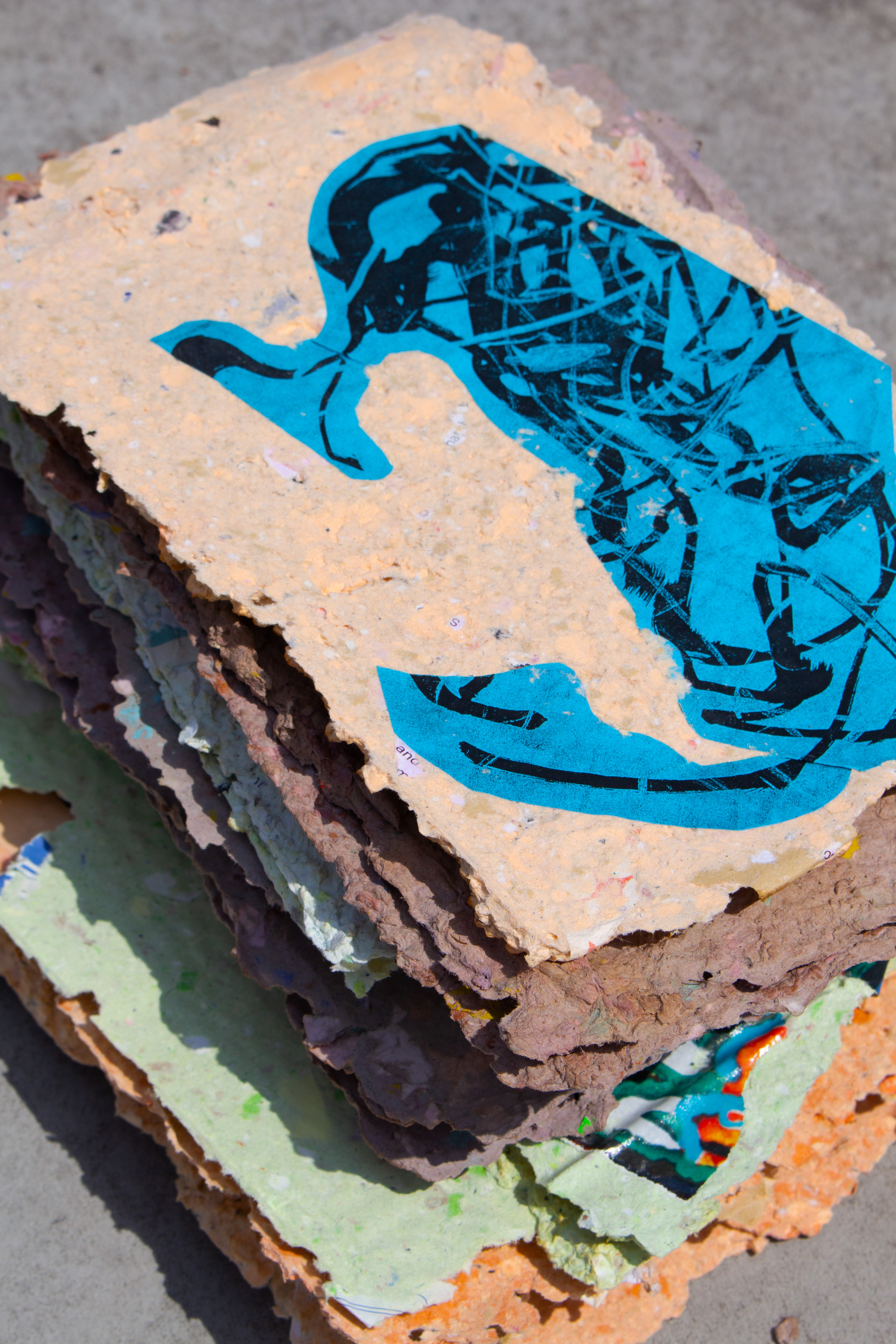 Pulped pages was an exciting collaboration between Forma Presse Book Fair and a continued collaboration with Drawing Room, London. Premaking the pulped pages meant that the workshop had a focus on the dry pulp and an additional scrapbook making element. The group were offered a pair of pulped pages to act as a front and back cover to their book but they could also choose to reshape these pieces, add additional paper pages, fastening, collage, live writing and drawing as well as combining and exchanging pages with other workshop attendees.