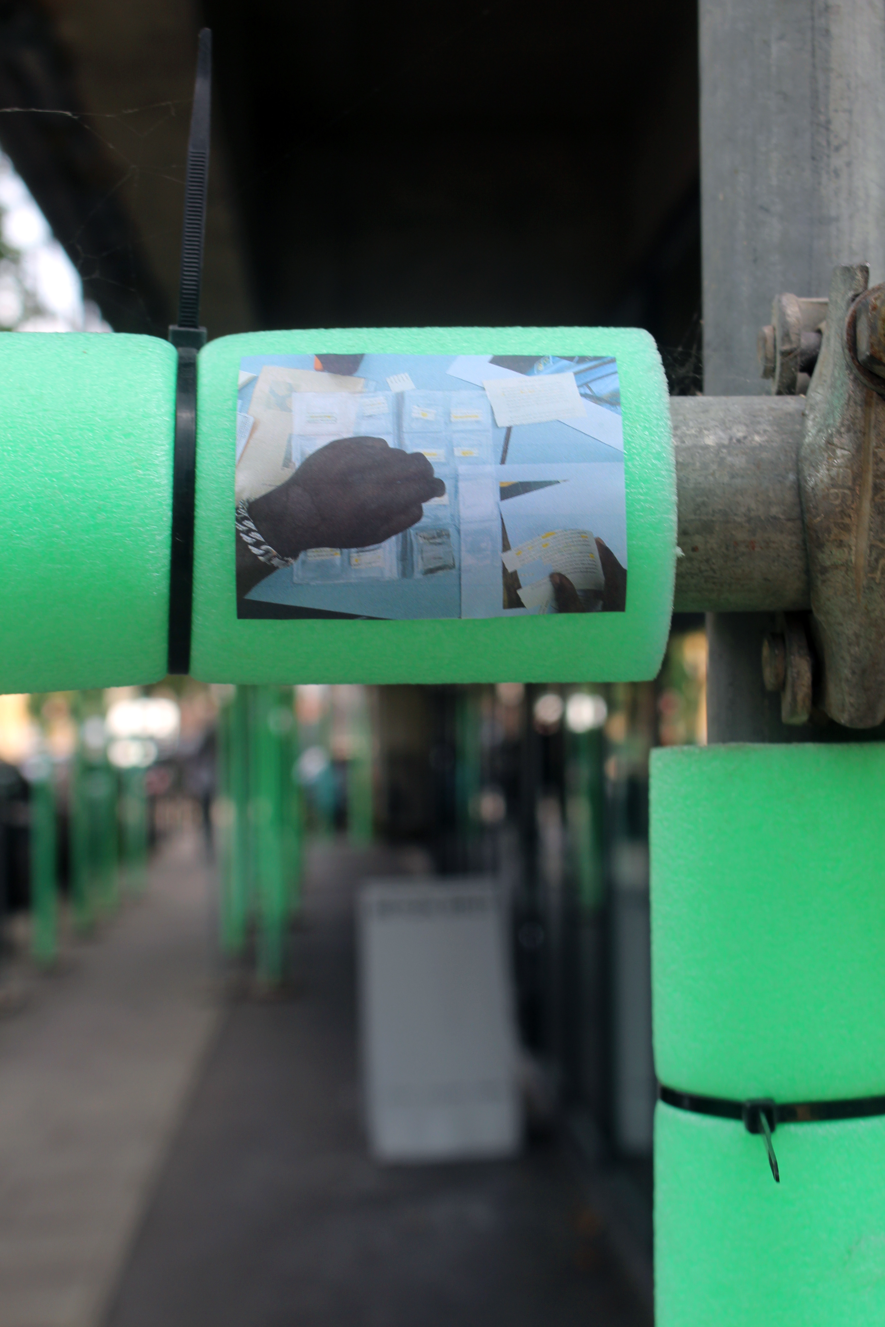 Considering how to distribute the instances of our making into exhibition contexts, we also planted some stickers of images close to the residents local areas, to encourage them to venture out into their nearby localities and to reaffirm their making outside of our sessions together.