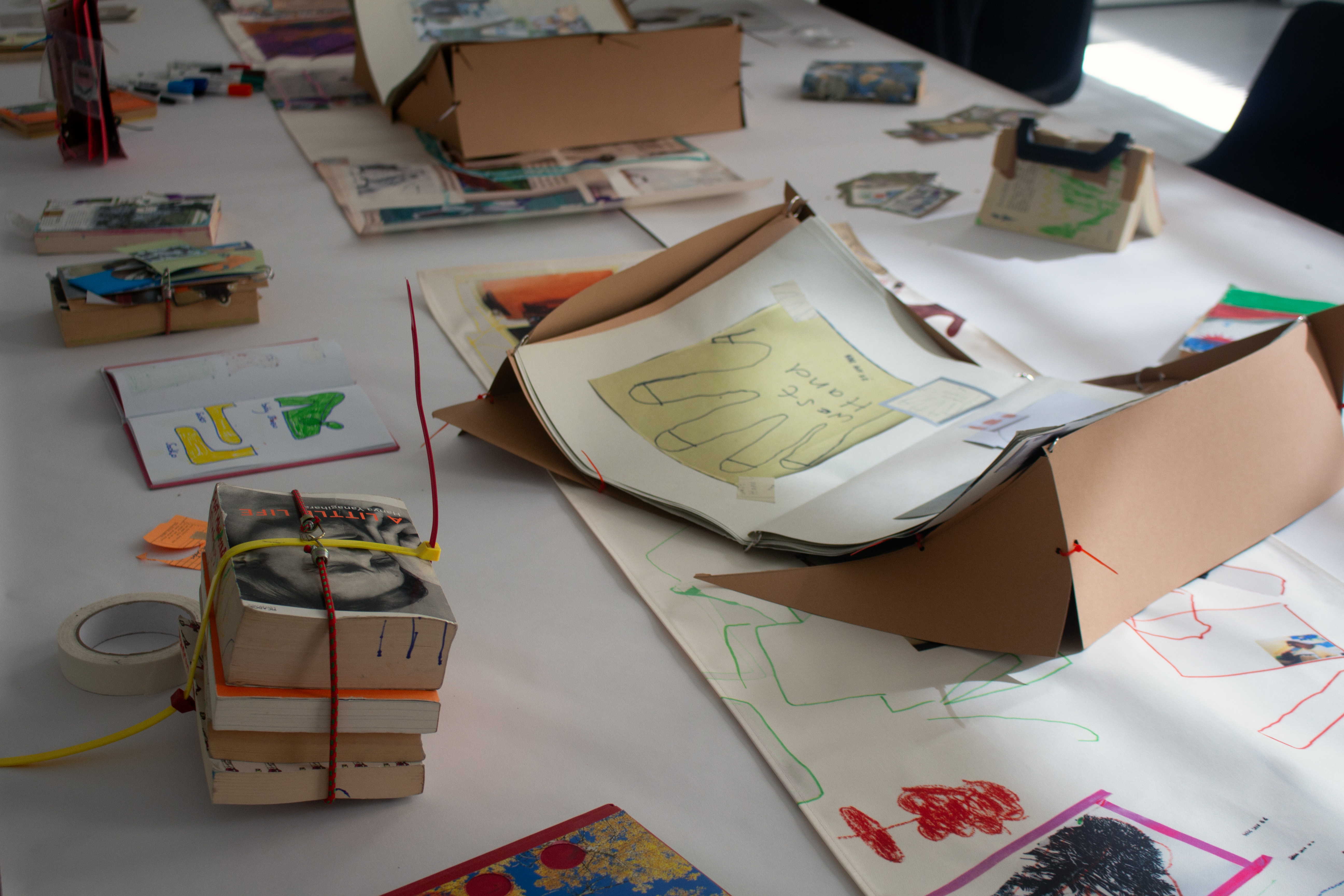 These weekly workshops have been responsive to the participants memories of doodling in old books as children and Tom Phillips book ‘A Humanent’ discovered in the library space at The Royal Academy of Arts.